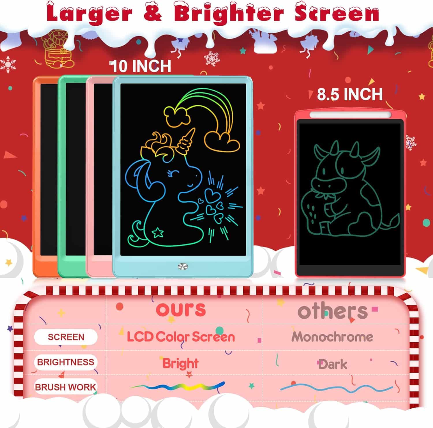 - [MULTI-PURPOSE]: A reusable draw pad for kids is suited to writing, drawing, office memo board, message board, and as a communication tool. This type of children’s doodle board is acceptable that you teach your kid to draw or instruction which could present the child’s imagination and enhance imagination by non-polluting, random graffiti, avoiding school-age children’s garments, stocking stuffers for kids. holiday toys list for 3 3-4 4-5 5+ 6-8 8-10 8-12 10 year old boys girls, easter basket stuffers for kids.