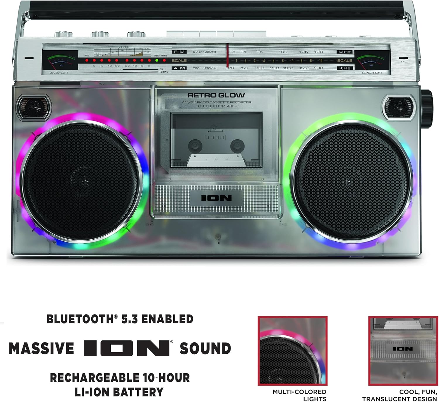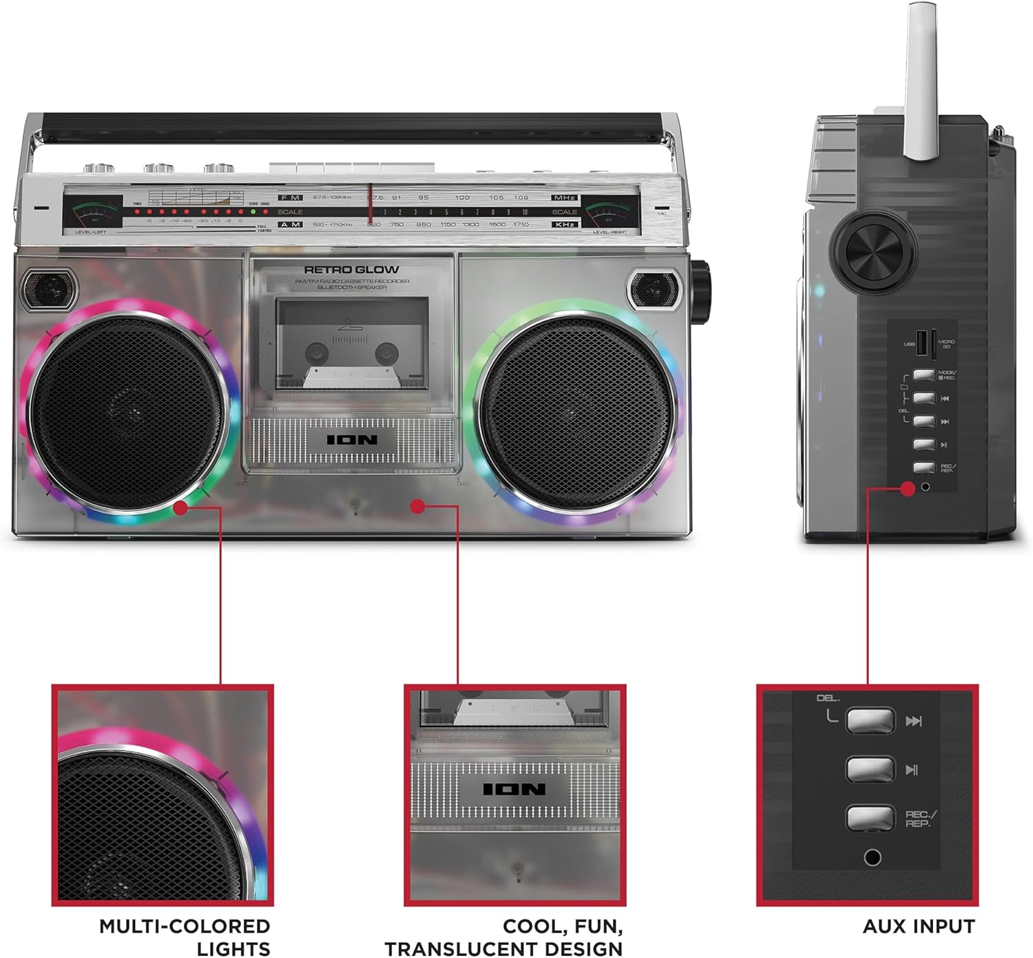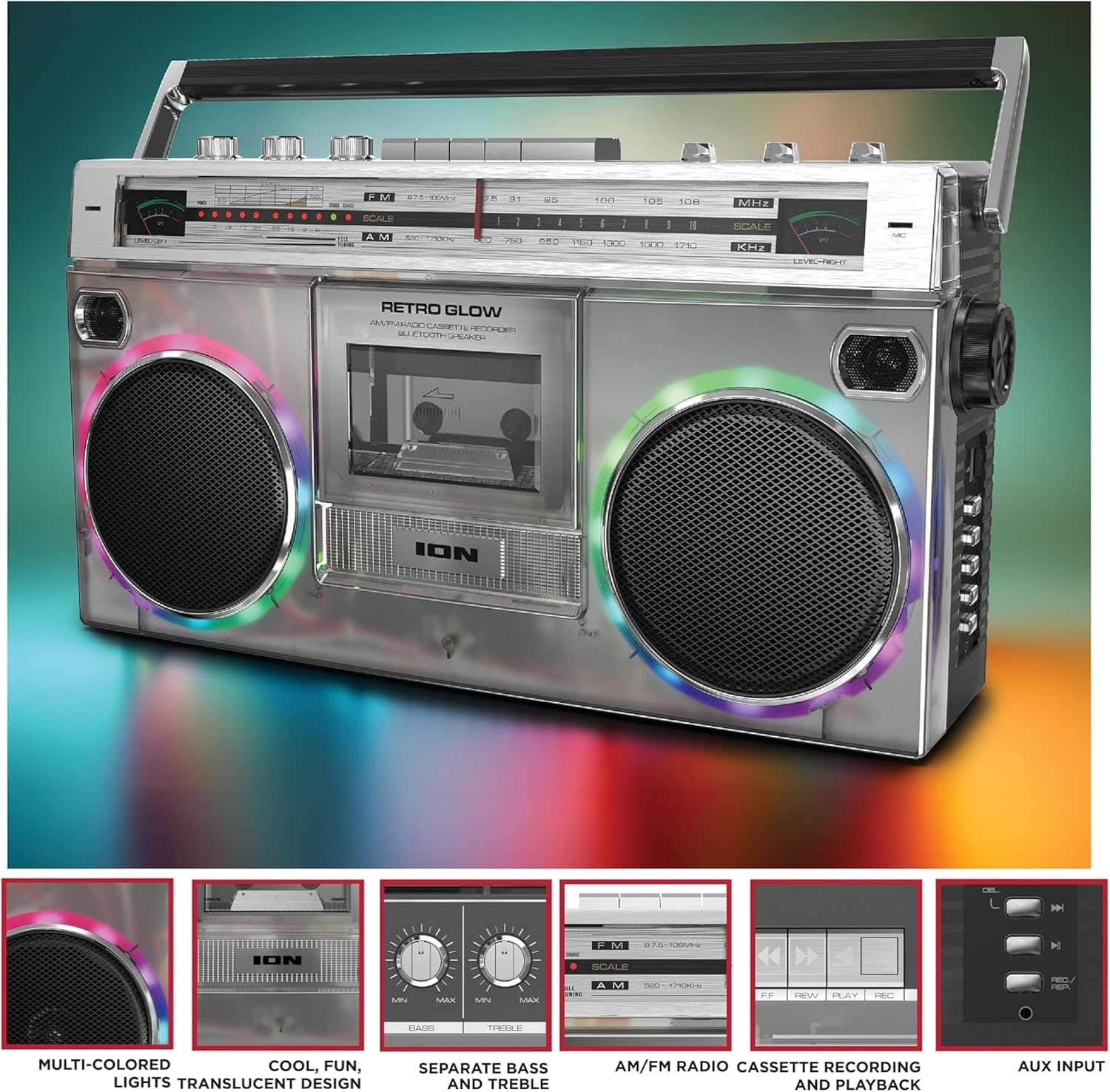 - ✅ ★ RETRO 80’S VINTAGE – Ion Audio Street Rocker 1980s style retro stereo cassette boombox Stereo cassette plays all the tapes in your collection,Records onto cassette from radio, built-in microphone or external source, classic boombox