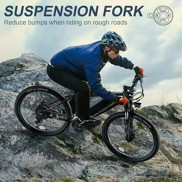 Lockable aluminum suspension fork makes the ebike ideal for mountainous and steep roads