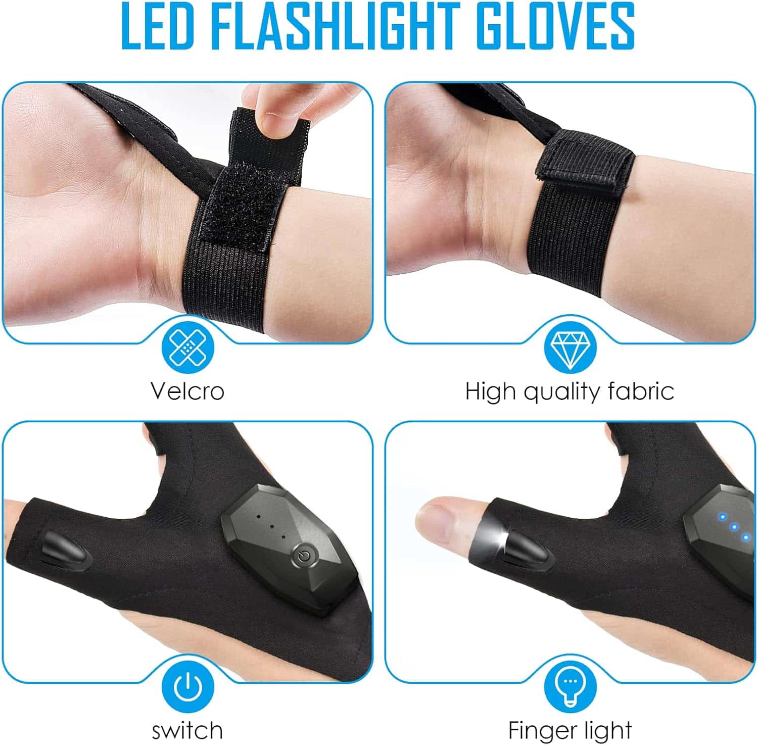 KEZKALS Gifts for Dad, Rechargeable LED Flashlight Gloves,