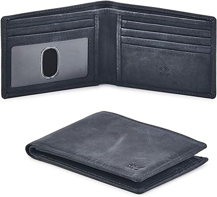 Real Leather Mens Bifold Wallet RFID Blocking Slim Minimalist